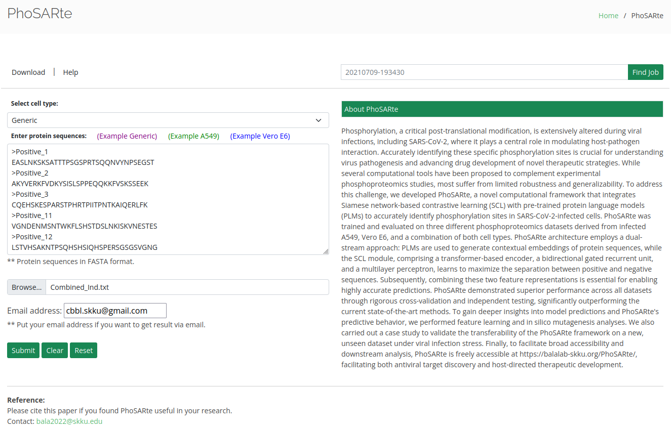 Step 1Go to the PhoSARte homepage by copying the following link https://balalab-skku.org/PhoSARte/ to the web browser or click here, and you will see its top page of PhoSARte. Click on the Help button to see a brief introduction about the server (this page).